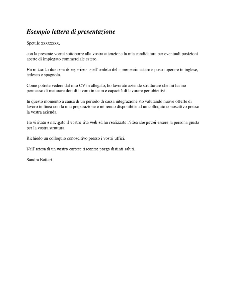 Lettera di motivazione esempio inglese